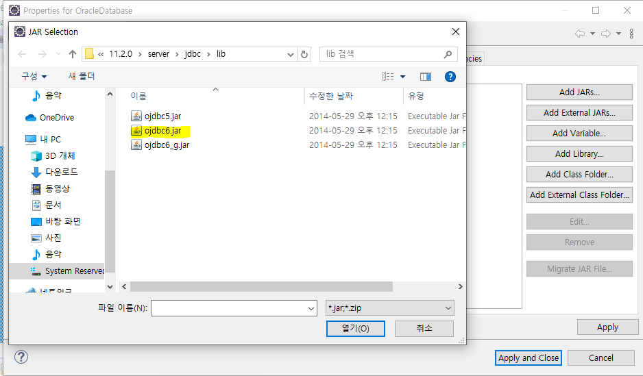 - Class.forName(driver) : 데이터베이스 연결용 드라이버 도구 세팅(선택) , 오라클 드라이버 즉 초반에 설정해주었던 ojdb6.jar 선택한 것 (경로는 아래 정리해두었어요!)