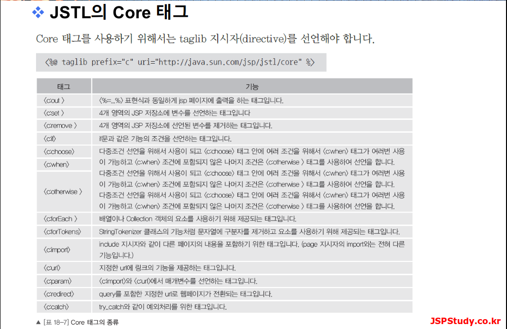 <%@taglib uri="http://java.sun.com/jsp/jstl/core" prefix="c" %> // core 태그 임포트