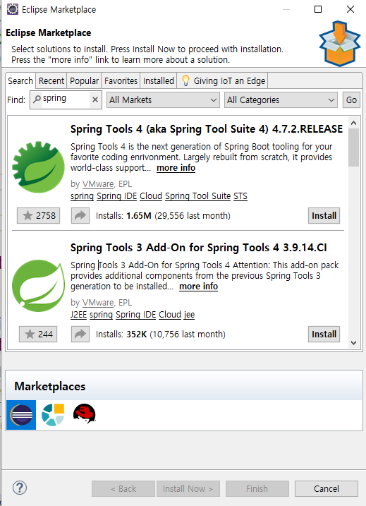 [Spring] 이클립스(Eclipse) 마켓플레이스 (Marketplace) 사용방법 본문