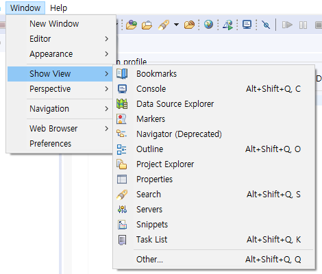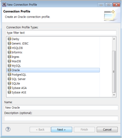 [방법] :Window > Show View > Data Source Explorer 클릭 > 하단에 생성된 Data Source Explorer 클릭 > Database Connection > new 클릭
