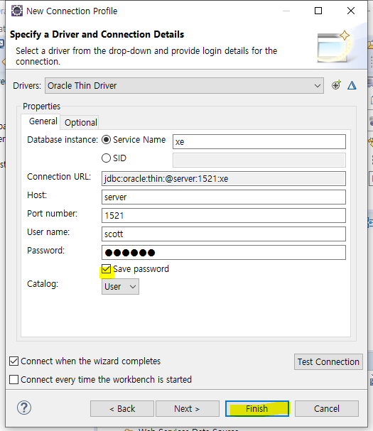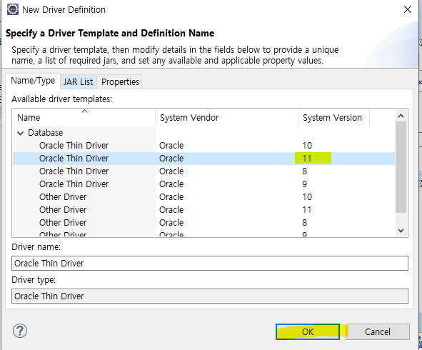 - 이제 oracle DB에 연결하여 웹 프로그래밍을 하기 위해 이클립스에 DB 연결을 설정합니다.
