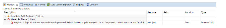 - 스프링 프로젝트를 사용하는 과정에서 pom.xml은 사용자가 필요에 의해 변경할 수 있고 그 에따라 다음과 같은 에러가 발생한다.