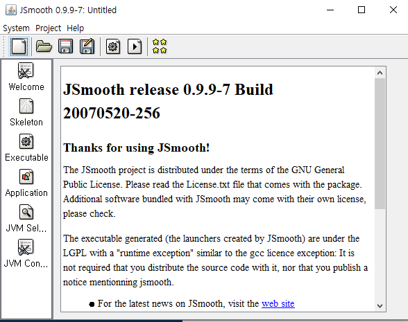 step 2. JSmooth를 설치하고 exe로 만들어보자