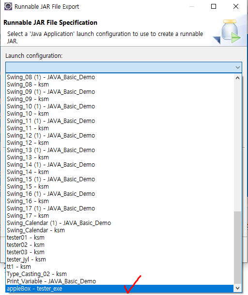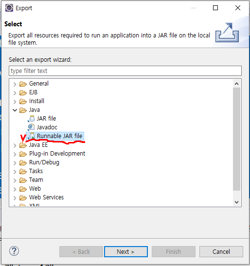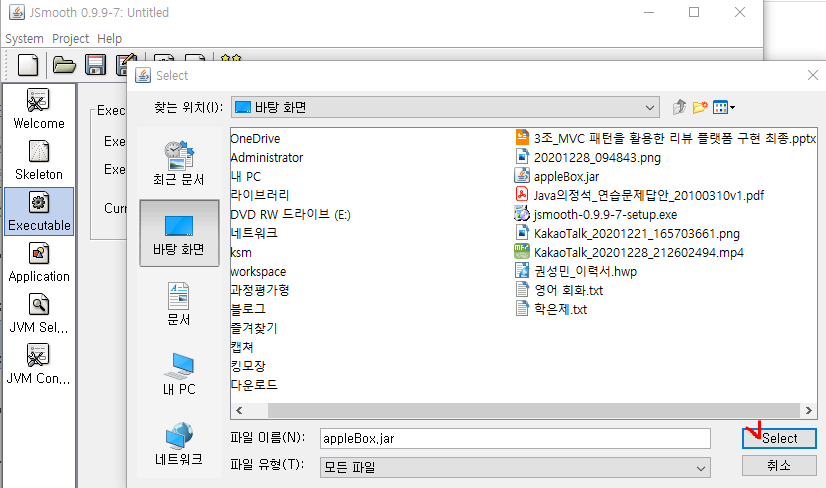 4. Excutable 선택 -> 맨 위... 클릭하셔서 우리가 준비한 jar 선택해줘요