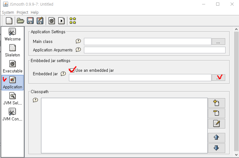 6. Application에서는 다시 한번 jar파일을 선택 하줍니다.