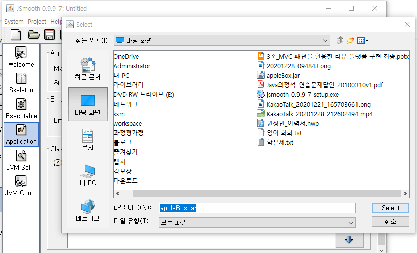 이번에는 자바에서 사용하던 프로젝트를 .jar파일로 변환하여 이를 JSmooth라는 녀석을 통해. exe파일로 만들어 보고자 합니다.
