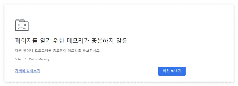 흔히 메모리 때문에 페이지가 죽는경우는 대부분 브라우저 메모리 초과일 가능성이 많기때문이에요.