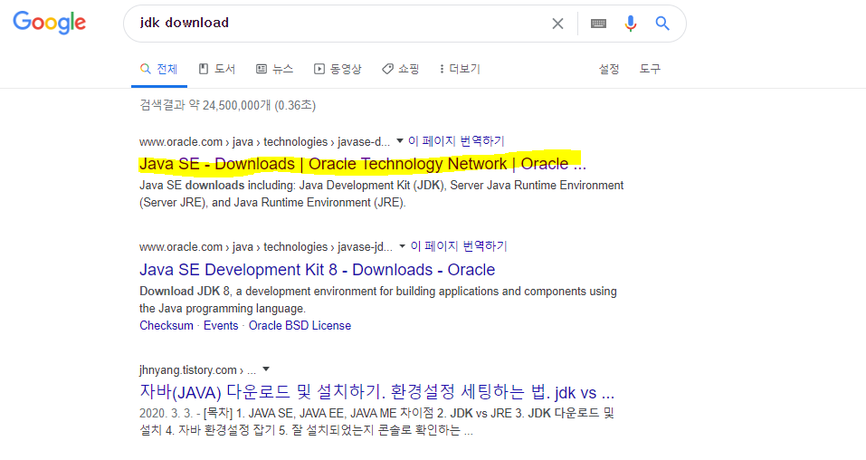 1. JDK : 그냥 검색창에 JDK 다운 로드를 검색한다.