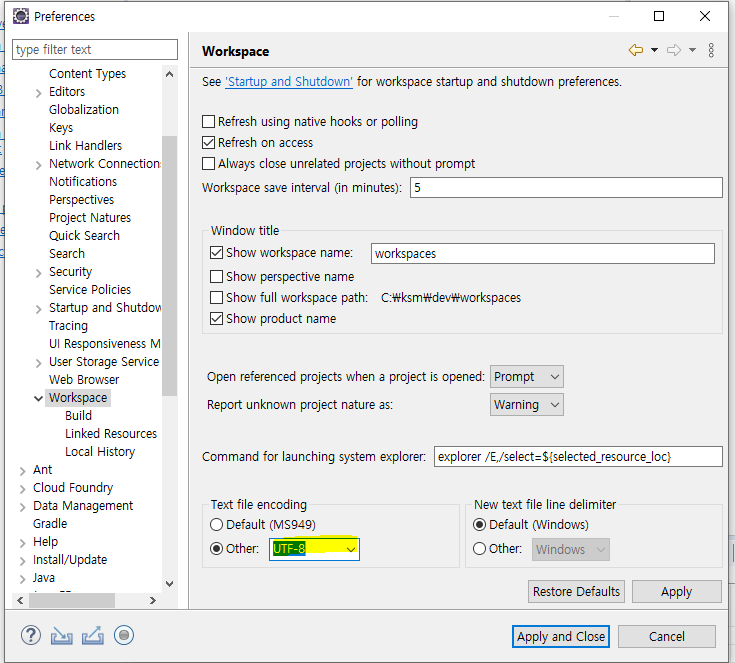 2. UTF -8 지정 (세계에서 많이 사용하는 것 이렇게 해주어야 파일이 안깨진다!)